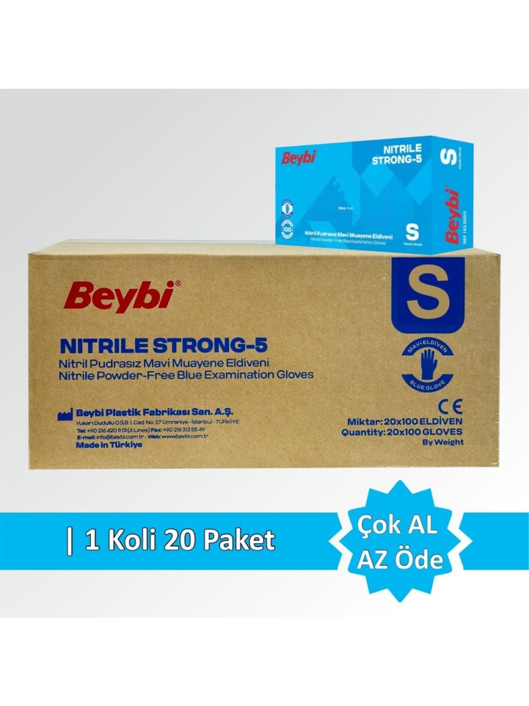BEYBİ STRONG 100 ADET KALIN NİTRİL MUAYENE ELDİVENİ, PARMAKUCU PÜTÜRLÜ