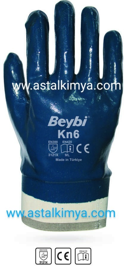 BEYBİ, PETROLCÜ,KN6 ,ŞARDONLU,LACİVERT,Pamuk Nitril Eldiven, KOLİ İÇİ 144 ÇİFT, NO: 9 veya 10