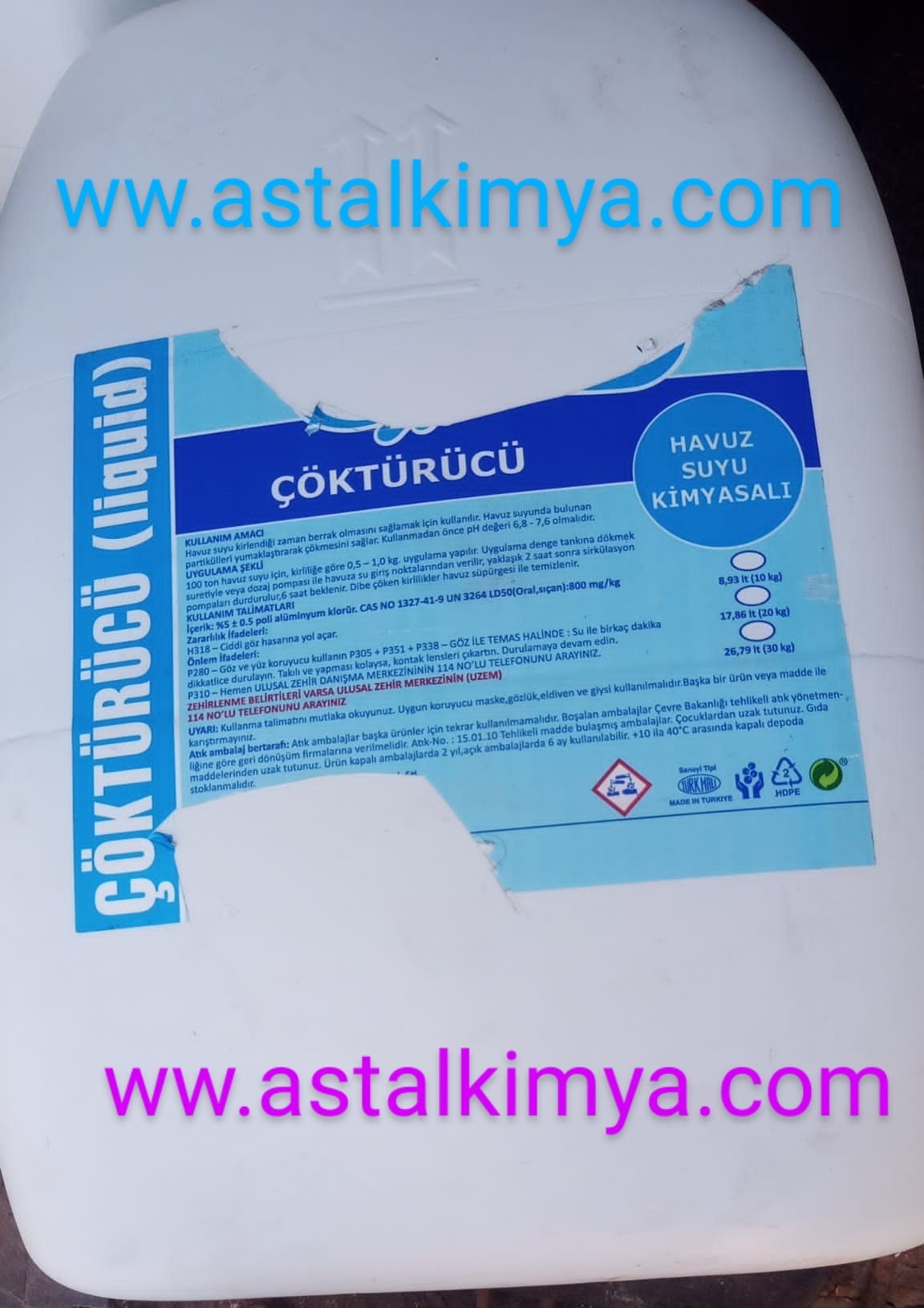 Kullanım Amacı: Yüzme havuzu suyunda kirliliğe sebep olan askıda katı maddelerin topaklanarak çökmesini sağlar. Bu topaklayıcı özelliği sayesinde birleşip çöken kirlilikler dip süpürgesi ile havuz dışına atılarak havuz suyu daha berrak görünmesini sağlar.